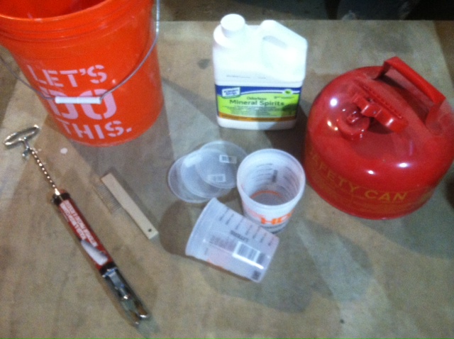 First and foremost if working with Mineral Spirits be sure to have an adequately ventilated area, again this is a hazardous material, so fresh air is a must when exposed to it’s fumes. Lay down drop cloths or plastic to prevent splatter, have rags, and have a trash barrel nearby. And finally whenever working with paint I’d recommend using a latex gloves to prevent additional clean up after clean up.