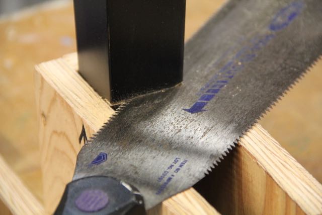 The “legs,” or long part of my jig is an arbitrary size, I left it long to allow the saw the rest on the edge and use it as a guide. The short part of the jig is cut to the thickness of the table leg.