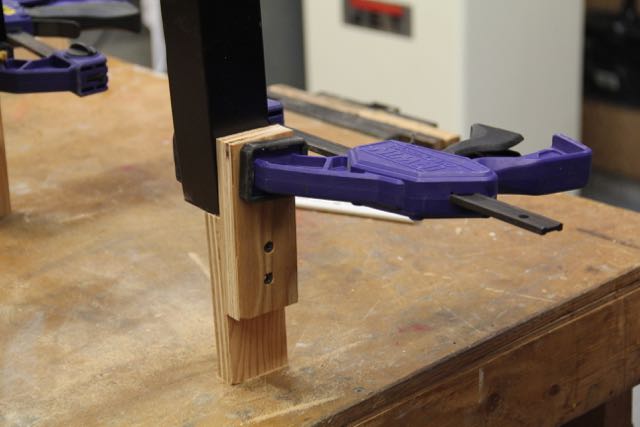 3. Clamp the jig at the end of the legs, which creates a pinching pressure and holds it tight.