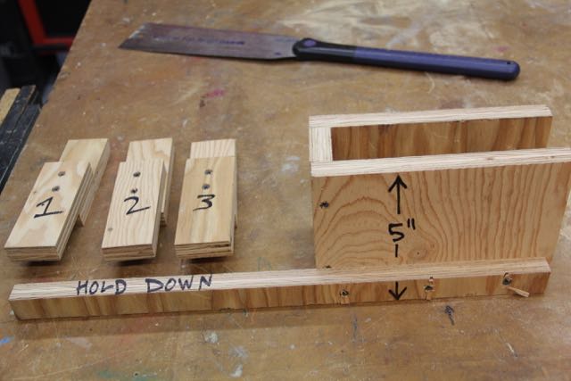 I also added a long clamping strip which I found helpful for holding the jig, and stool still when cutting.  This clamp strip can be clamped or screwed down to the workbench.