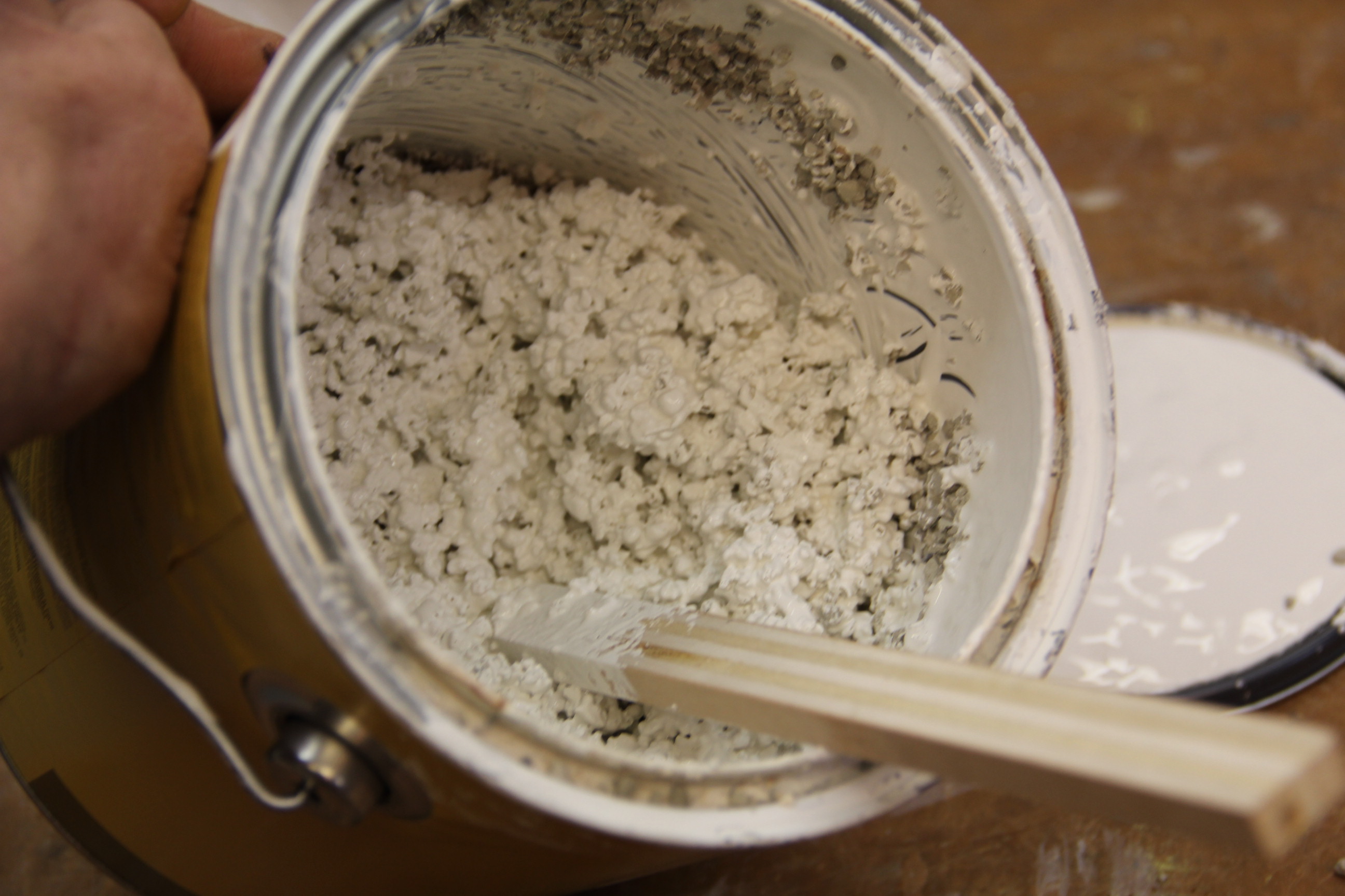 If you have cans of unused paint, or paint left over that is in usable condition, try to donate it to a community service organization or theater group. My local theatre is always looking for good paint.