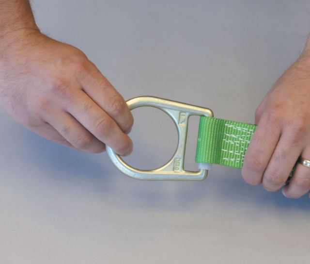 The D-ring and stitching is the main point of connection for most harness situations and the most important in fall arrest scenarios. All of your weight is arrested through this single point either through a lanyard or lifeline. It needs to withstand a lot of pressure. Look for discolorations, deformations, and sharp edges in the metal. The loop and stitching in the webbing at the d-ring should also be inspected for any abnormal wear or loose/pulled stitches. If this area fails in a fall situation, things will go from bad to much, much worse.