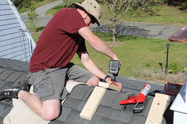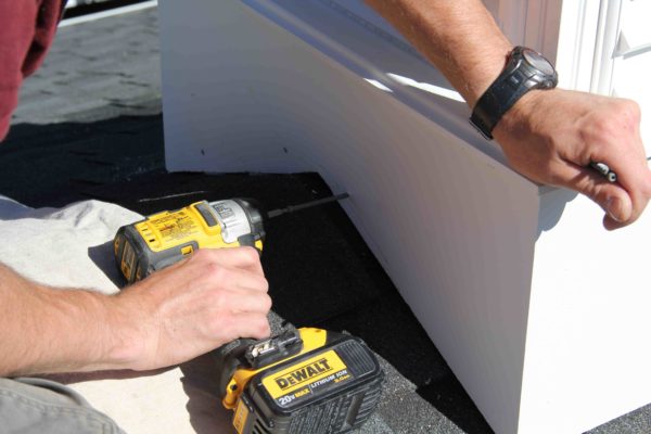 Once you are satisfied with the fit on the roof attache the cupola with two to three stainless steel screws into each mounting block. Plug or patch the screw holes. On PVC cupolas I use the Cortex screw and plug system
