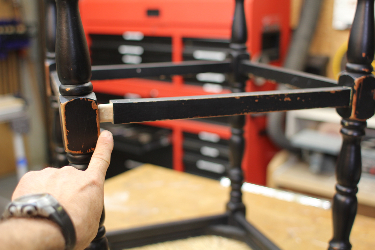 This stool was so bad that I needed to do something about it. As you can see from the picture two of the stretchers had separated from their mortise joint.