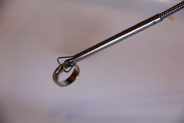 A week earlier my friend called and told me his wedding ring fell into his drain. Most jewelry is not magnetic so he needed a different option.