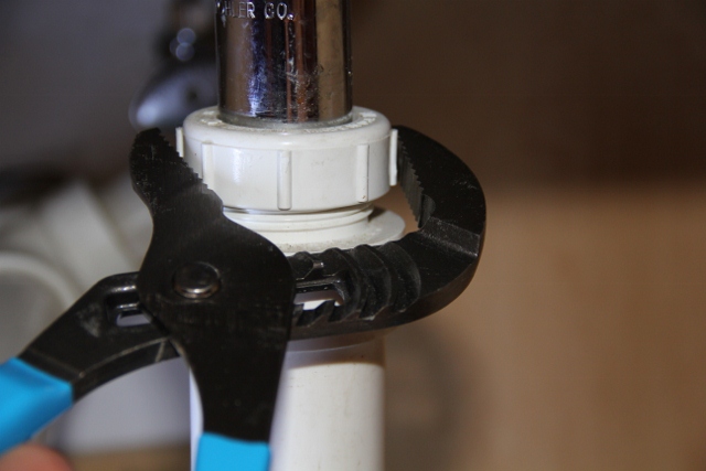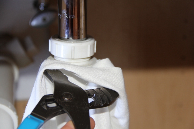 Use the channel-type pliers or a wrench to loosen the P-trap’s nut. Use a rag or tape if the p-trap nut is metal or chrome to avoid marring the finish.