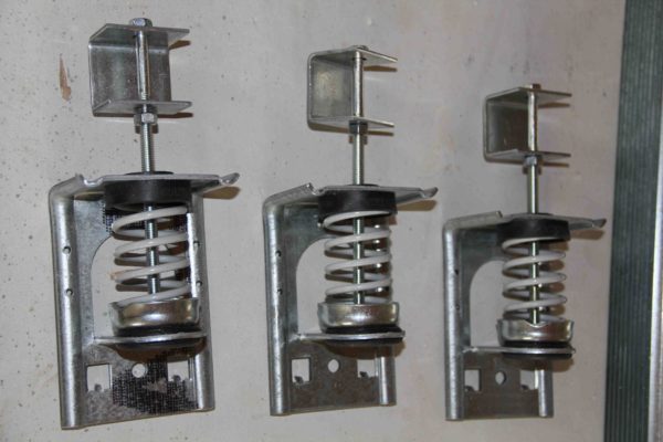 A channel clip and threaded leveling rod assembly is designed to carry a single piece of 1-1/2″ x 1/2″ 16-gage steel carrying channel. Drywall furring channels are then attached to the carrying channel 16 inches on center to take the place of ceiling board strapping.