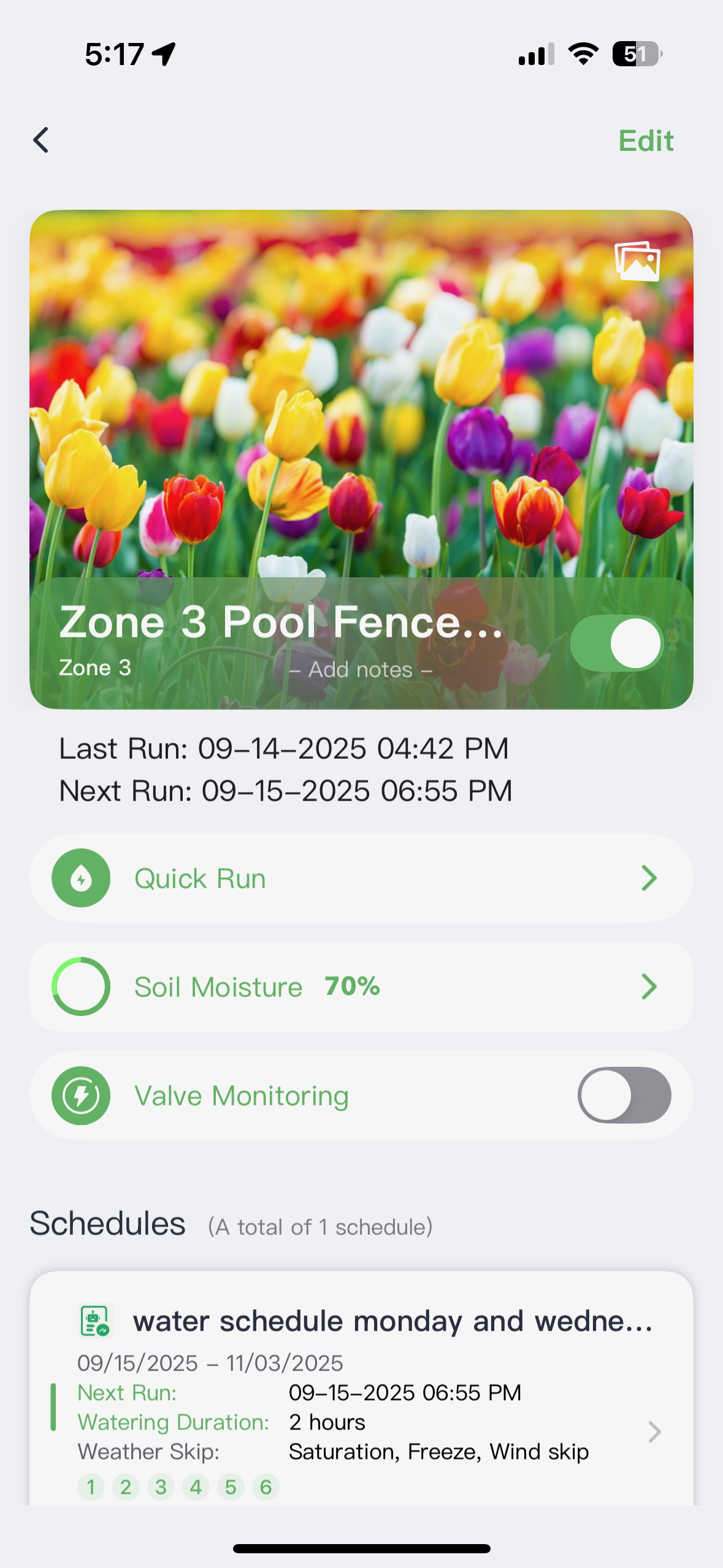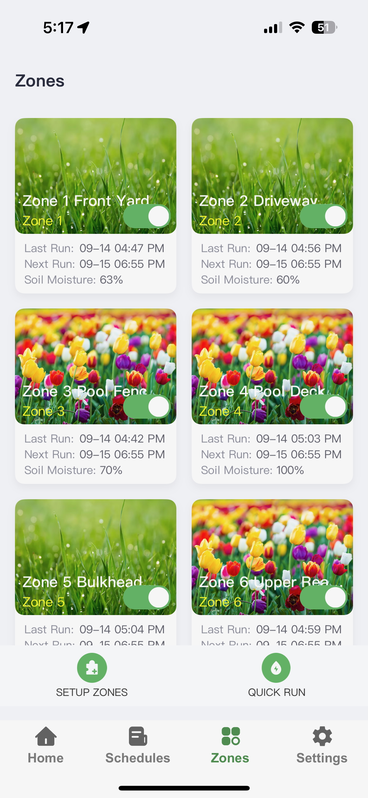 You can tailor watering schedules for each zone depending on the type of plants, their exposure to sun, and soil types.