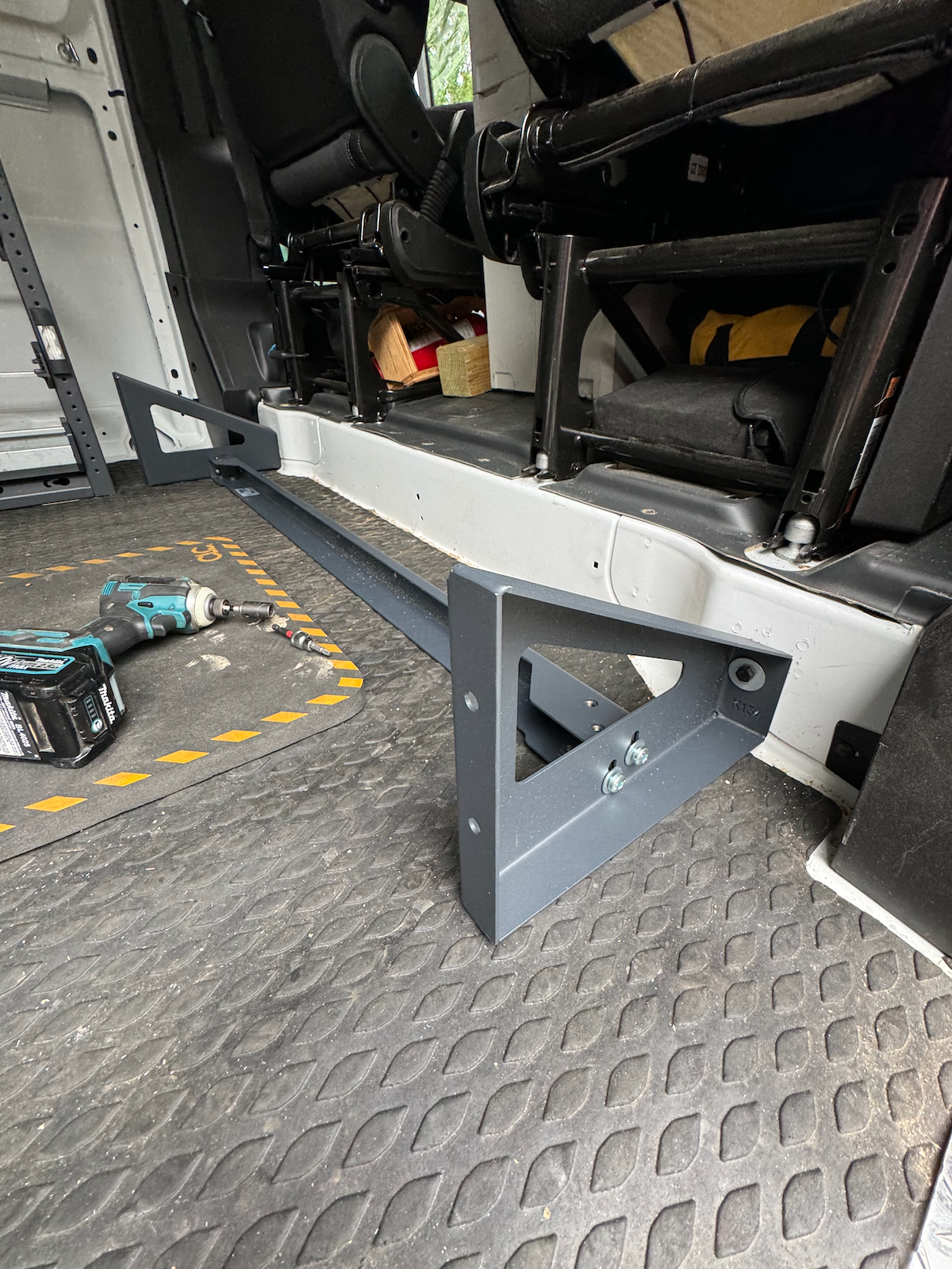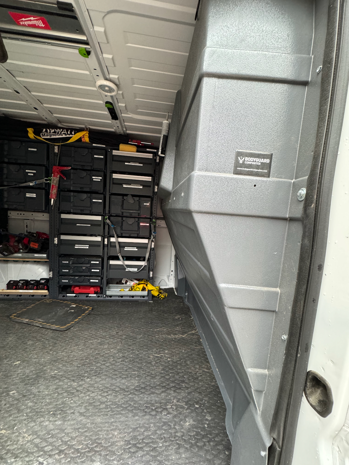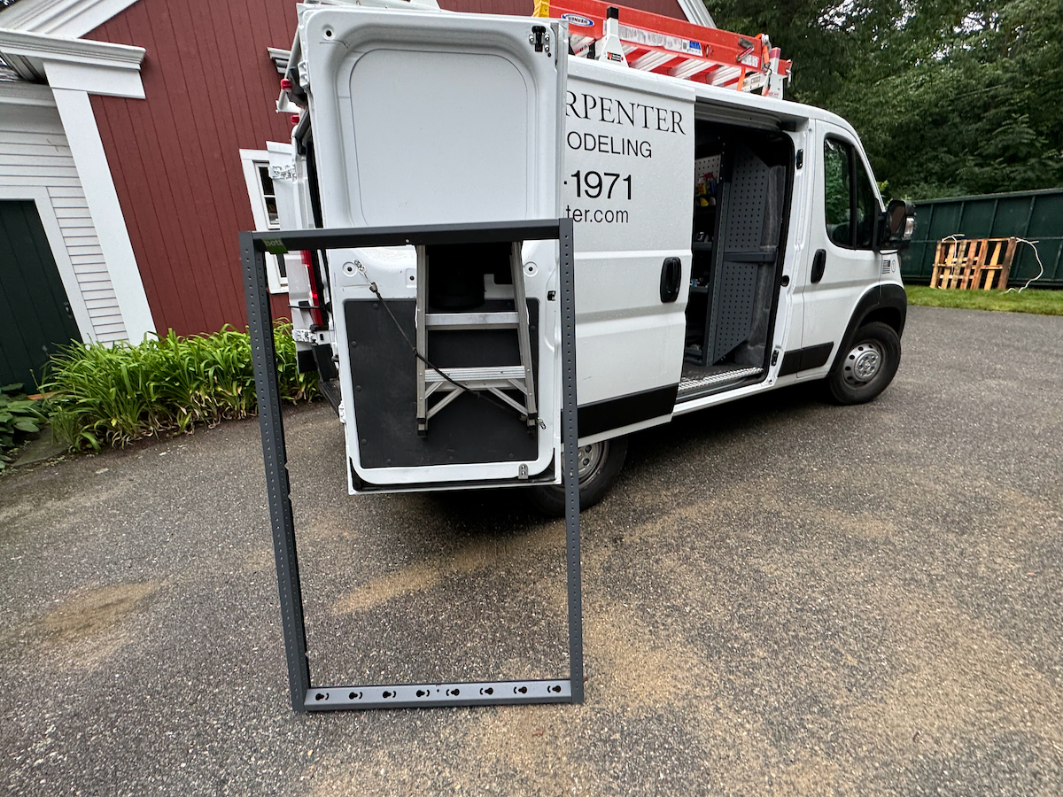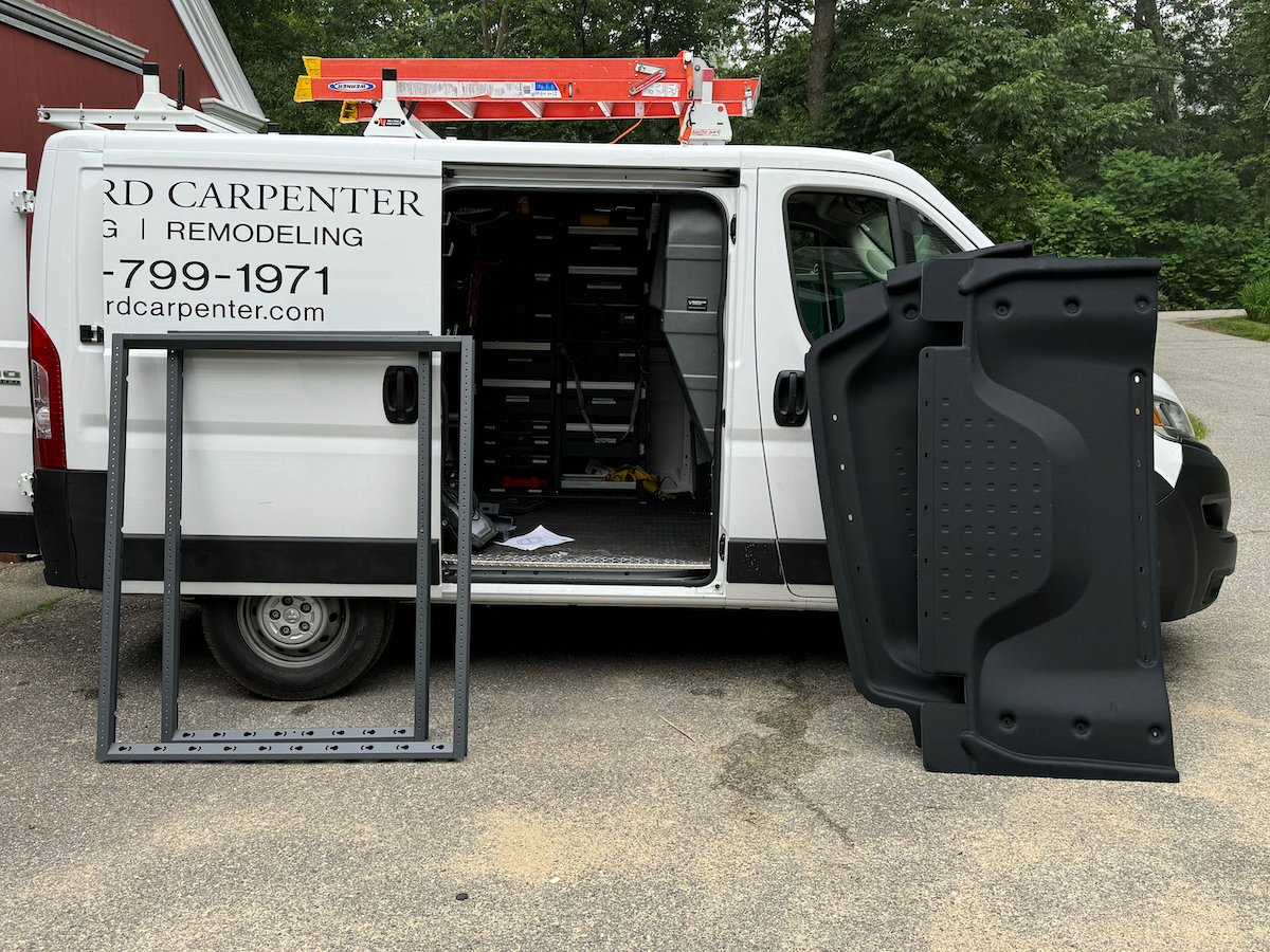 The doorway shelfing installation isn’t something that’s part of Bott Smartvans regular offering, but they have the parts in stock and can help our customers with customizing their van the same way. Its important to note that it only works with a SmartStow Partition because of the way it mounts to the frame.
