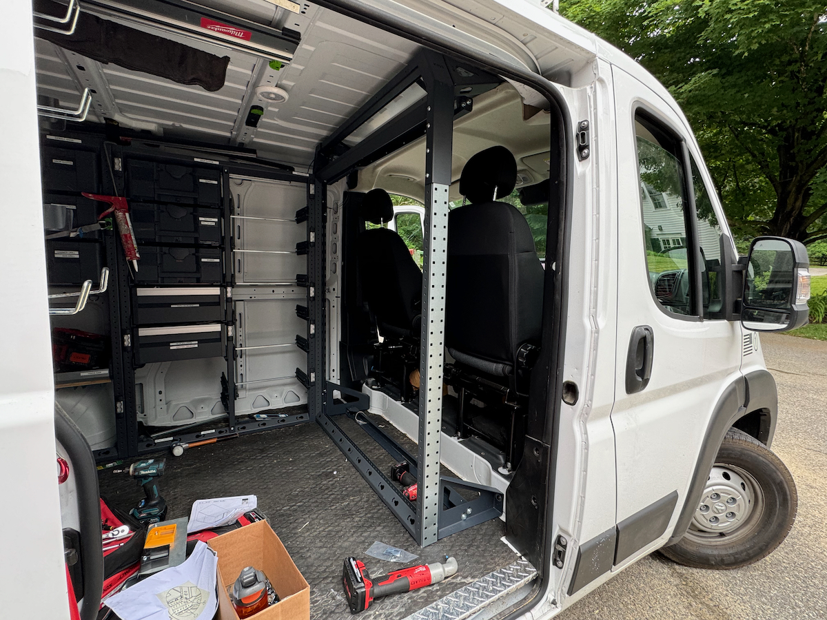 While the SmartStow Van Partition installation process was manageable solo, having an extra pair of hands would have expedited it. It took approximately 8 hours to remove the old partition and install the new shelving system. Adjustments to the existing racking on both sides of the van were necessary to ensure a proper fit.