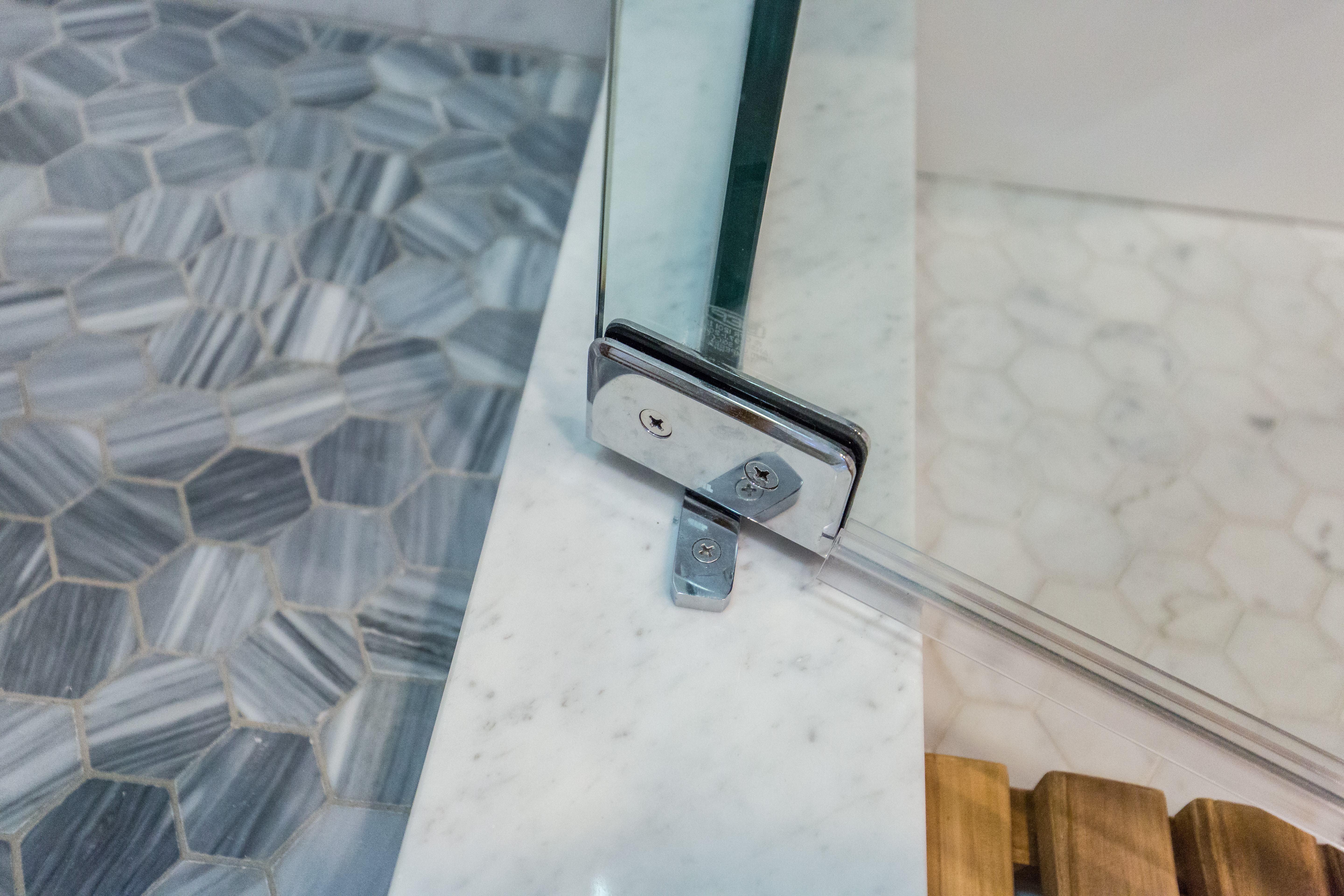The Basco shower door we installed is, as Goldilocks once said, just right — the 3/16” glass feels thick and solid, for a luxurious, spa-like experience. (It sounds a little silly to say that, but when we show off our new bathroom to friends and relatives — yes, we’ve become those people — more than one has blurted out, “Oh my God, it’s like a spa!” I don’t think they’re just trying to be nice.) The heavy hinges glide super-smoothly, giving the door a high-quality feeling. We went with a chrome finish for the hardware, to match the chrome of our American Standard fixtures, but Basco also offers a wide variety of other hardware finishes, including oil-rubbed bronze and brushed nickel.