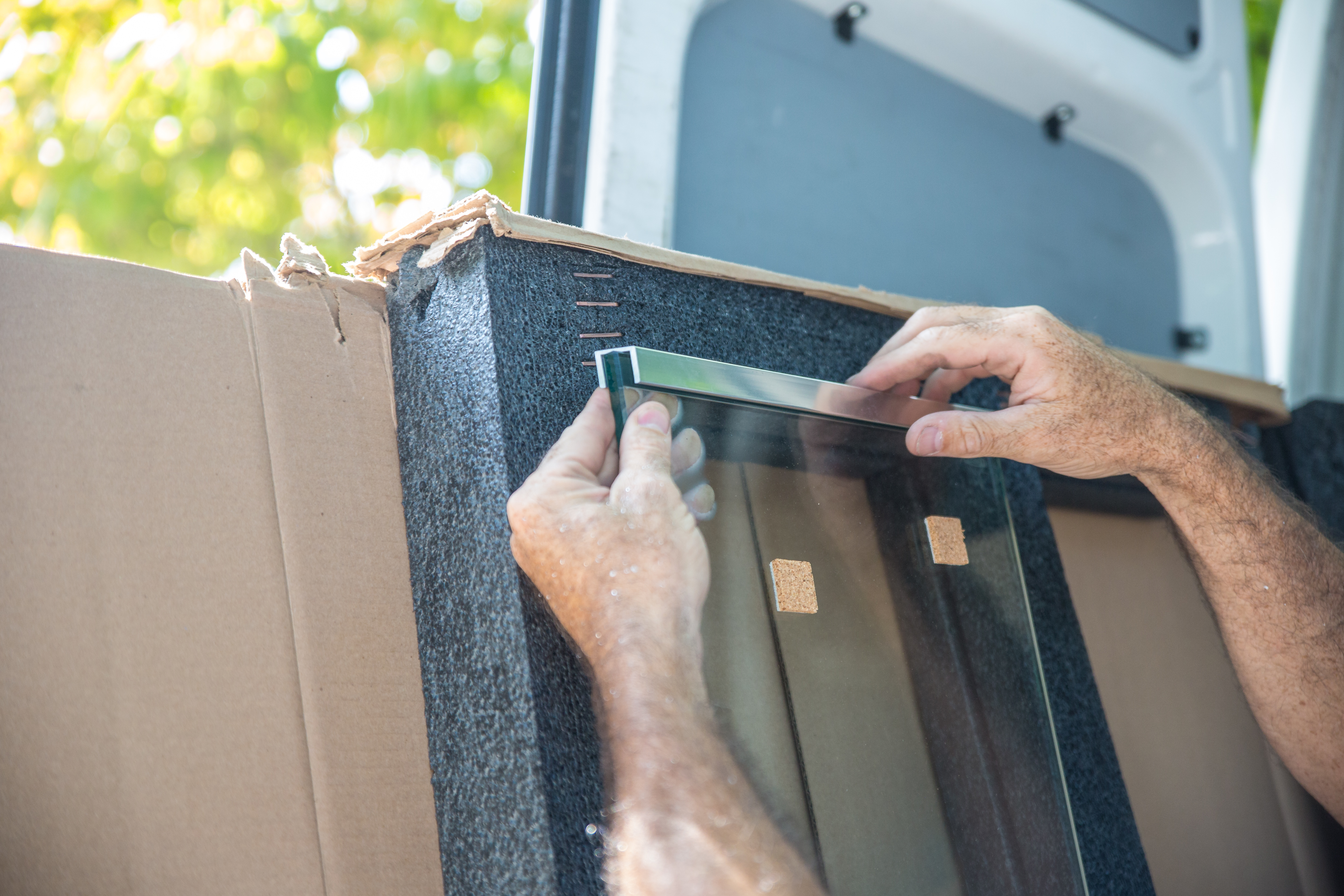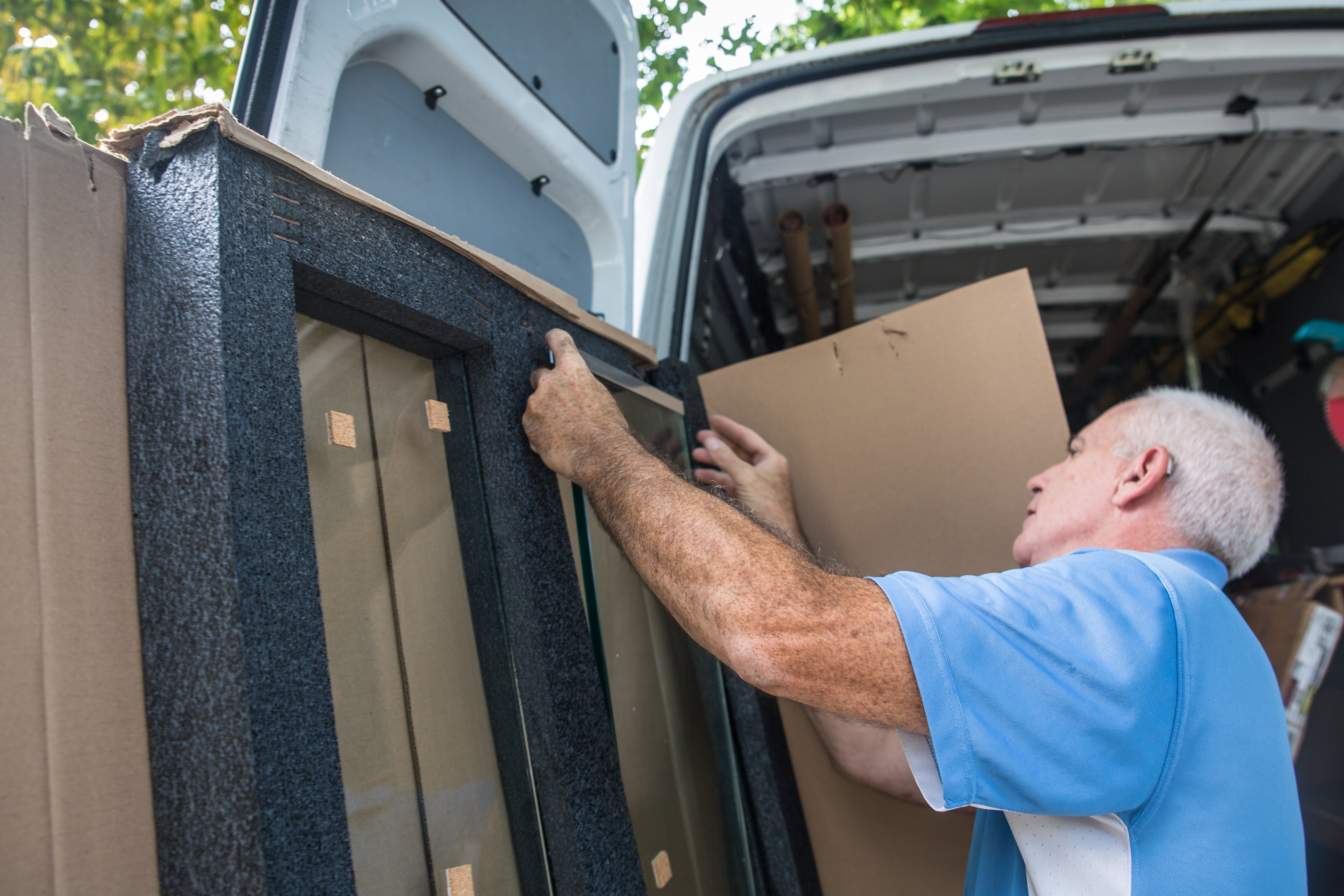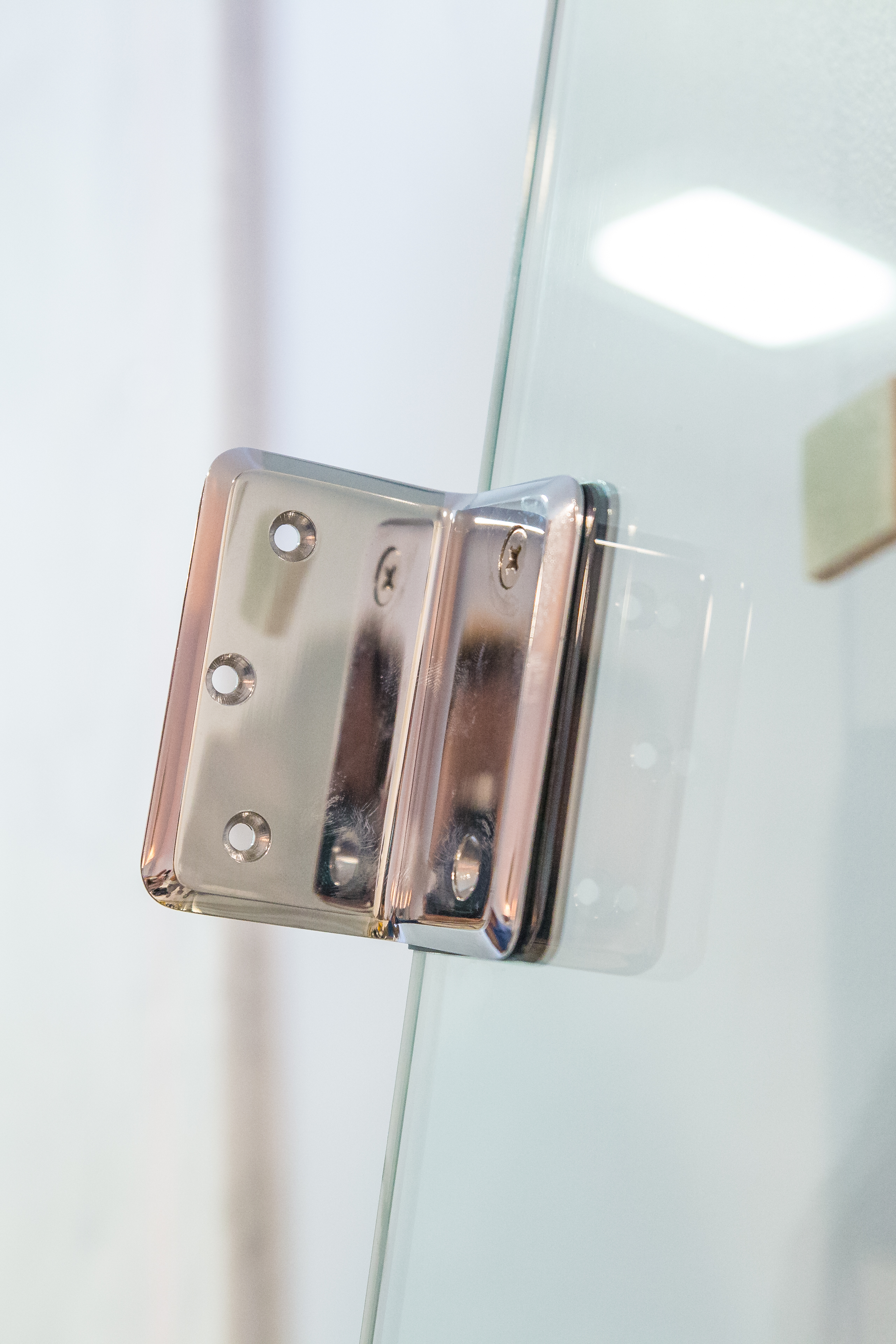 The Basco team did such a nice job with the installation that the door hangs perfectly — it will easily swing open and shut, and is so well balanced that it will stay wherever we put it, eg, partially open or partially closed. This prevents any surprise door-hitting-you-on-the-way-out moments. (I liked the modernity of the swinging door, but Basco also offers more traditional sliding-door options if that is your preference.)