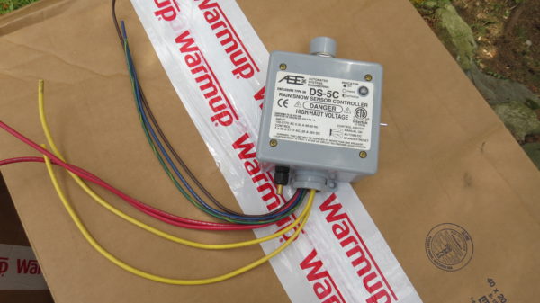 The controller box has a round sensor on the top and has a toggle switch that can be left in either automatic or on/off. Automatic mode has the ability to turn the snow melting mats on when it starts to snow and then turns them off when snow is no longer sensed.