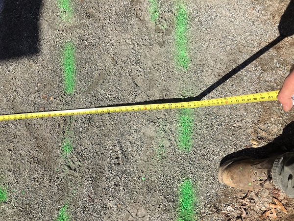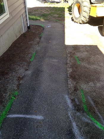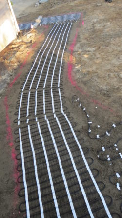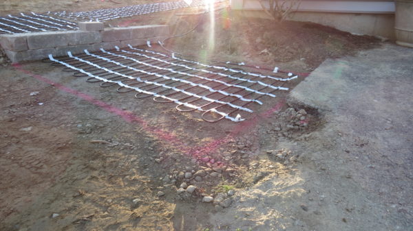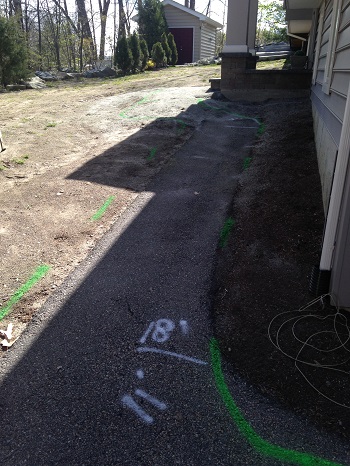 Then it was time to play in the dirt! We marked off the design with marking paint and after a few tweaks with adding and erasing the paint lines, we had a final design. Once the visual was laid out on the ground we took pictures, wrote up the dimensions, and emailed everything over to Warmup.com. They handled the design of the mats, customizing what lengths and sizes would work best and which controller we should use. One week later we received two boxes on the clients’ door step.