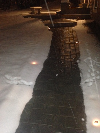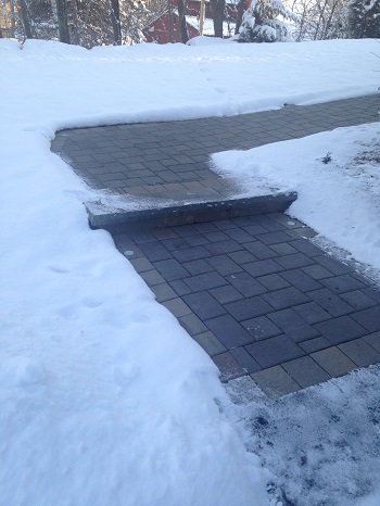 The walkway held up maintenance free after a few small snow storms with little accumulations. But the real test came the morning after the blizzard of February 2017. A true New England winter blew down a foot of snow with even larger snow drifts. It was a winter wonderland everywhere except where the Warmup Snow Melting Mats were. The walkway and landing were free and clear of any danger from accumulations of snow and ice.