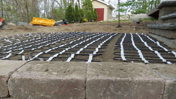 Installation was fast, easy and enjoyable. My landscaper started off by grading the whole yard. Then he installed a 12” thick layer of processed gravel that was compacted with a plate compactor. The electrician tested the resistance of the mats before installation to compare to the reading on the cable’s label provided by Warmup. The numbers matched up and the cables were rolled out.