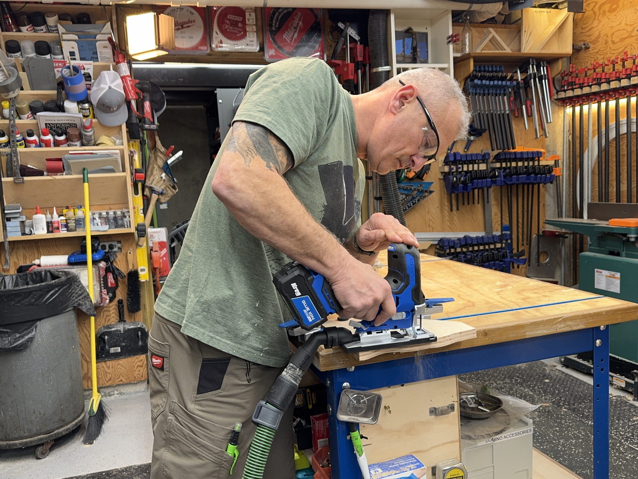 The tool uses metal housing and metal gearing for durability. It’s compatible with Kreg 20V Blue Ion batteries and comes with one cutting blade. In use, the trigger design and quick blade changes are highlights, but the tool has a noticeable amount of vibration. Price: $140 bare tool, $220 kitted.