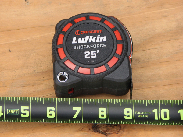 That’s the list of Lufkin’s Shockforce features, and why I like this tape measure so much. The Shockforce doesn’t have a finger brake, but most of us unconsciously brake a retracting blade with the index finger of the hand holding the unit, or the thumb and fingers of the other hand, so I don’t consider this feature necessary. In fact, I usually forget to use it when tapes have it.