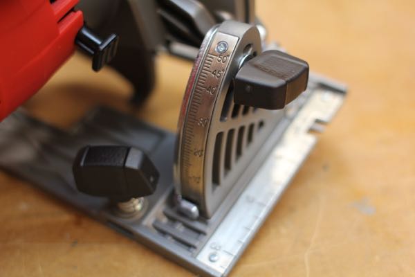 The saws knob adjustments are solid and easy to use and the bevel adjustment allows for a 50º cut. Depth of cut at 90ºis 1-5/8” and approx. 1-1/8″ at 45º. An LED light is activated when the user depresses the safety switch, and the light has a delay allowing it to nicely illuminate the cut line.