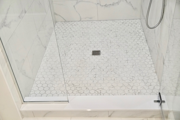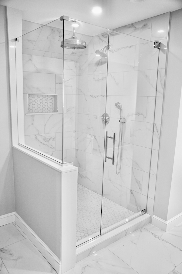 This is a brief synopsis of our Partridge Lane Master Bathroom Remodel. From the bright marble tile to the octagonal shower floor and niche backsplash, this modern bath feels modern, clean, and refreshing.