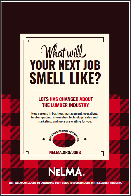 To get the word out, NELMA developed and distributed an informational poster to every single high school in Maine, New Hampshire, and Vermont (up next: northern Minnesota, Wisconsin, and Michigan). The poster features a scratch-and-sniff section, and asks students to consider what they’re next job might smelllike (answer: pine!). The poster will be distributed to trade schools and two-year community colleges throughout NELMA’s graphic footprint (Maine & New England to the Great Lakes) during 2Q19.