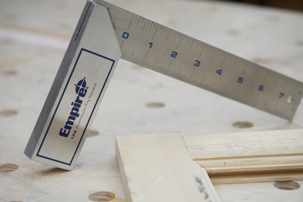 In my shop I use the Empire 122-8” Try Square, which is a stainless steel etched blade and heavy-duty aluminum billet handle. This try square has inch graduations and is durable and accurate.