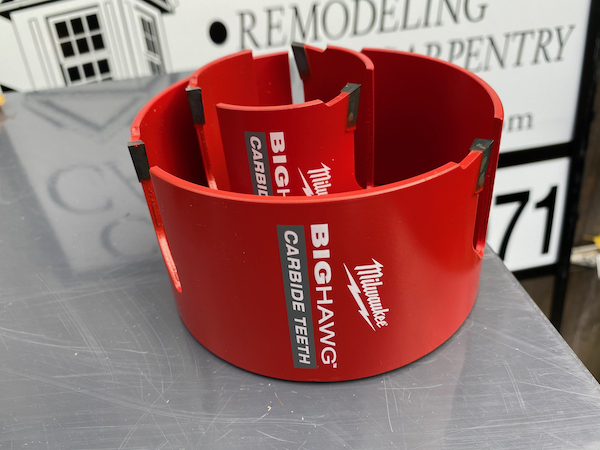 Milwaukee says that this bit lasts 50 times longer but if it lasts 25 times longer, I’ll be way ahead of the game. I’ve had past experience with some Bosch and Diablo carbide hole saws and truly feel that carbide is a far superior way to cut holes.