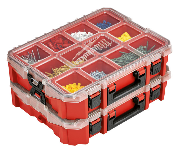 As contractors we know that just one of these Milwaukee Job Site Organizer wouldn’t be enough and Milwaukee took this issue and designed a stackable organizer with side clips to secure one another. These innovative side clips not only allow the units to be attached together, they also provide full access to each when they are stacked on top of one another. As part of their new design Milwaukee increased durability by reinforcing ribs for strength and added an weather seal gasket to keep your fasteners dry.
