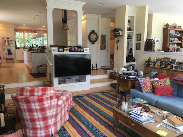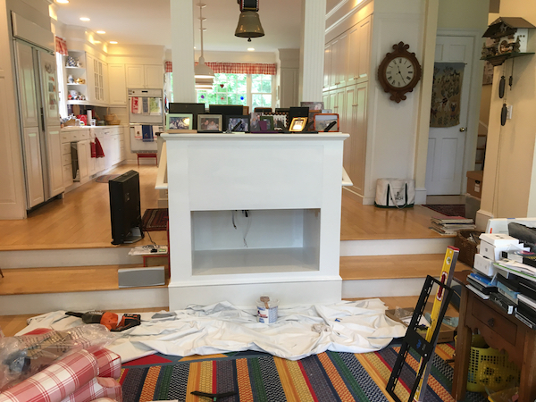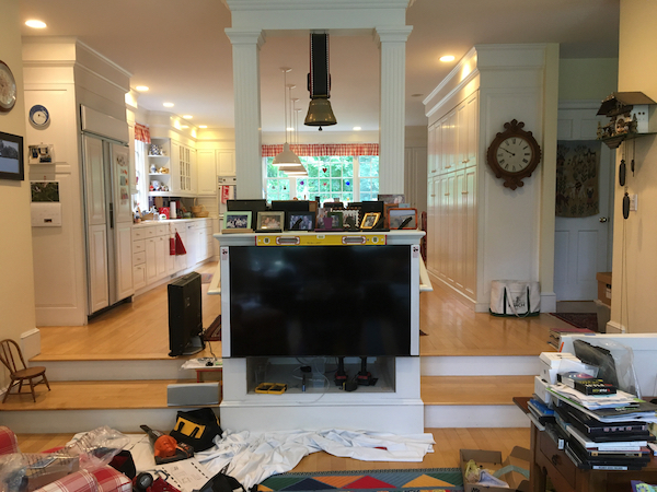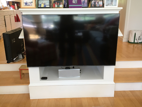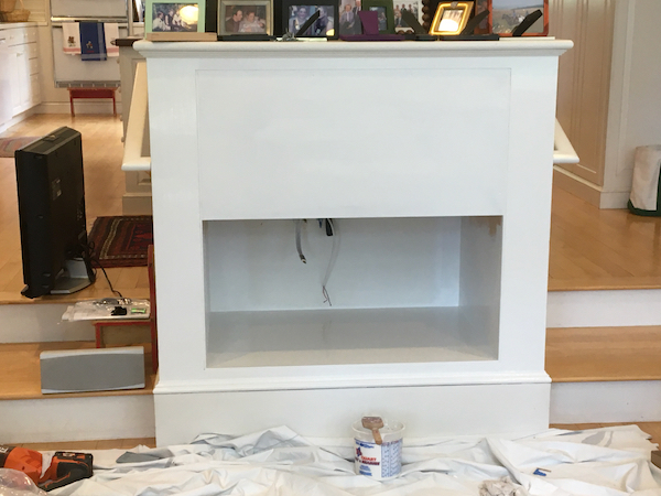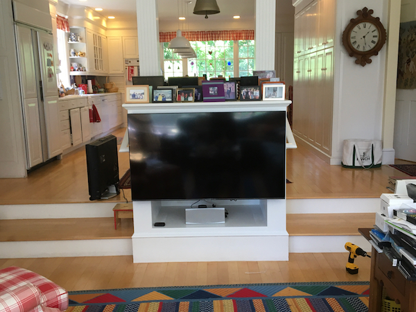 The decision was also made to leave the bottom half of the cabinet open for a soundbar speaker, Apple TV and access to the power outlet, etc/