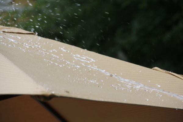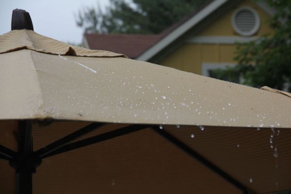 There has been many a sun shower where my patio umbrella has offered limited protection only to become saturated and start dripping onto out food, magazines or heads!