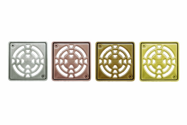 The color finishes include Rose gold, Vintage gold, Classic gold, and nickel. These are part of the Schluter KERDI- DRAIN point system. They are also available on all four patterns of the Schluter point drains – Pure, Curve, Floral, and the Original grate design. For more in depth information please visit www.schluter.com