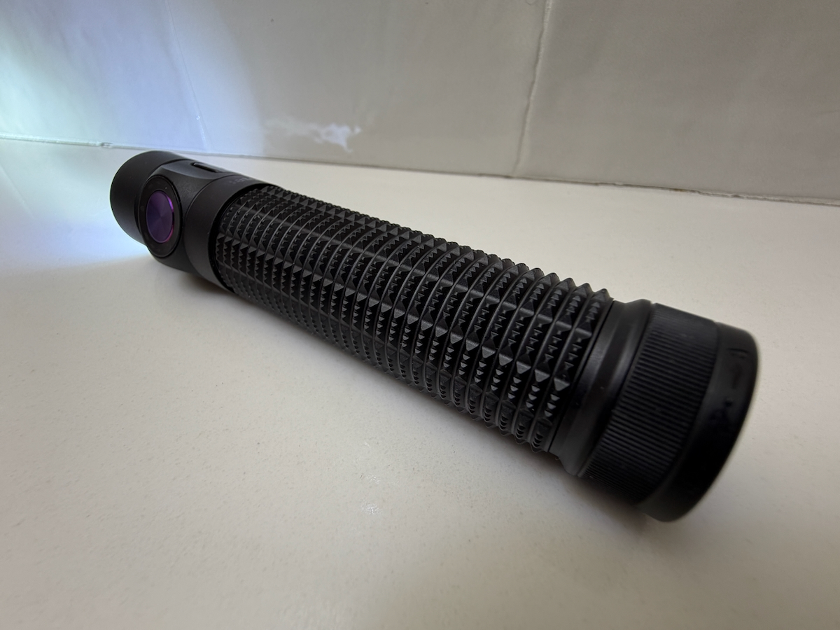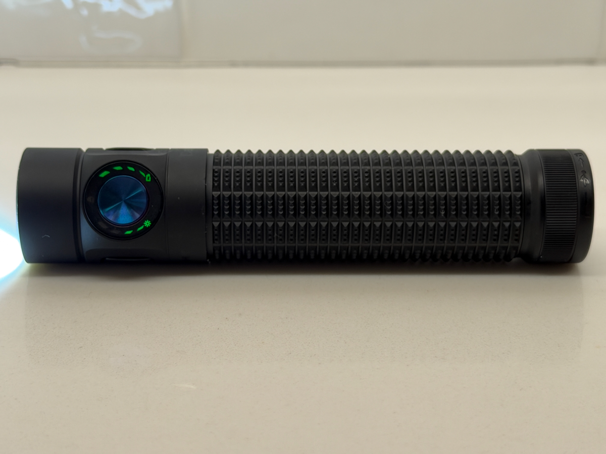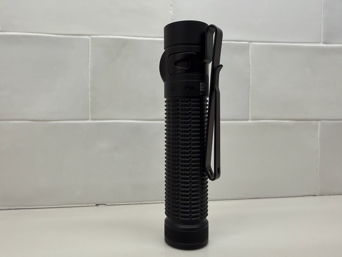 TheOLIGHT Baton 4 Pro Flashlight build quality is rugged. The housing is aerospace-grade aluminum with a hard-anodized finish. The grip portion features an aggressive knurling that is durable and provides an excellent, secure grip, even if your hands are wet or you are wearing work gloves. Additionally, the flashlight features a robust, two-way pocket clip that gives you two distinct carry options: a low-profile deep carry for securing it out of the way, and a higher, more visible position for quicker access.