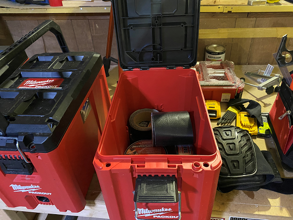 We build a lot of decks and we use the Packout Compact Tool Box to store some of the tools we don’t use all time. We store our metal connector nailer in one along with a 25ft air hose and the nails for the gun. In another one, we store our Camo Deck Bending tools. In the third one, we store all our G-Tape to tape the joists before we deck them.
