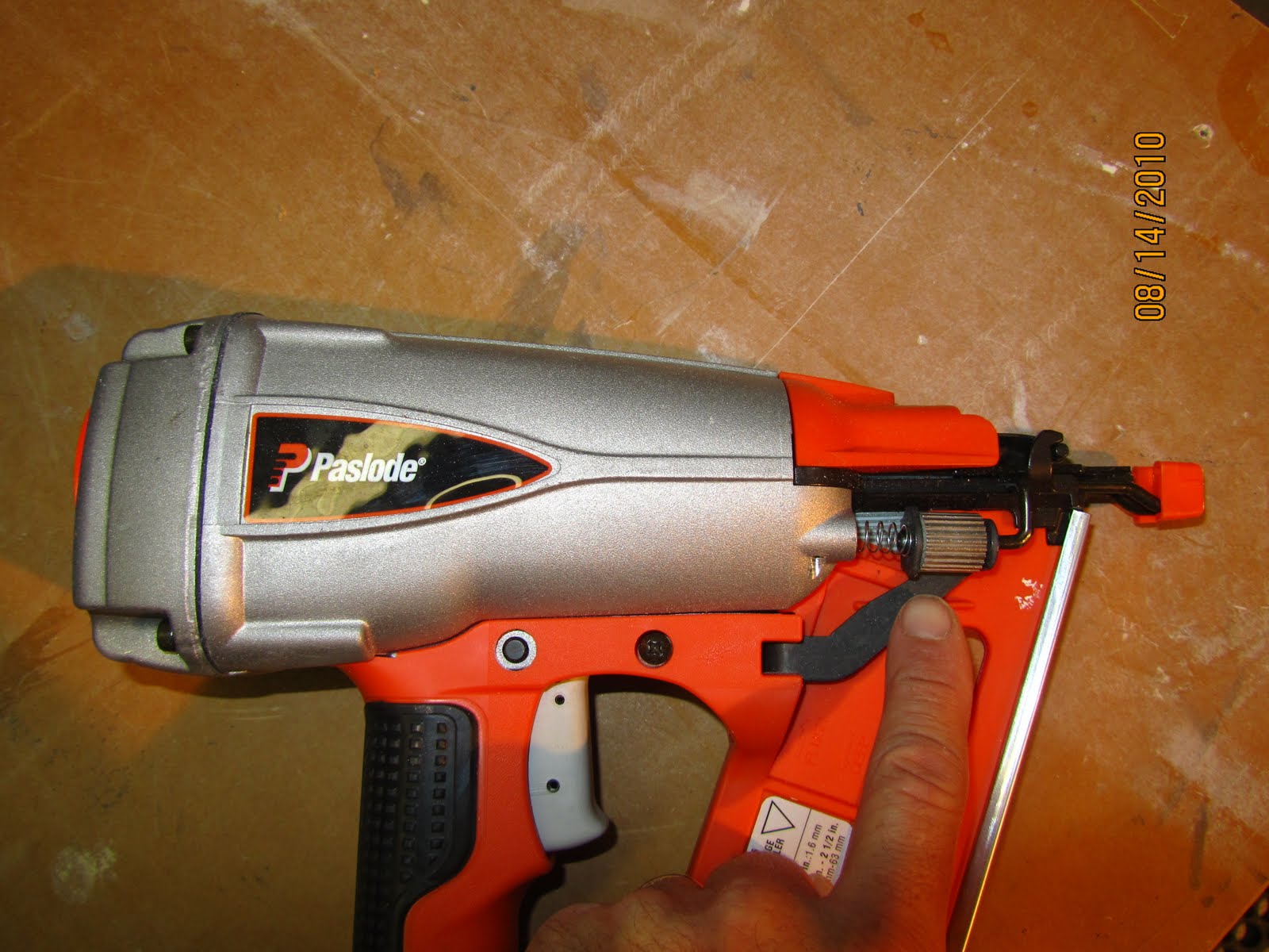 I was concerned about the exposed depth adjustment knob spring behind the adjustment knob. Job sites can be tough on tools and it’s possible that this spring could catch on something like a screw driver sticking out of a tool bag, or protruding nail and become damaged. I would like to see Paslode better protect this spring.