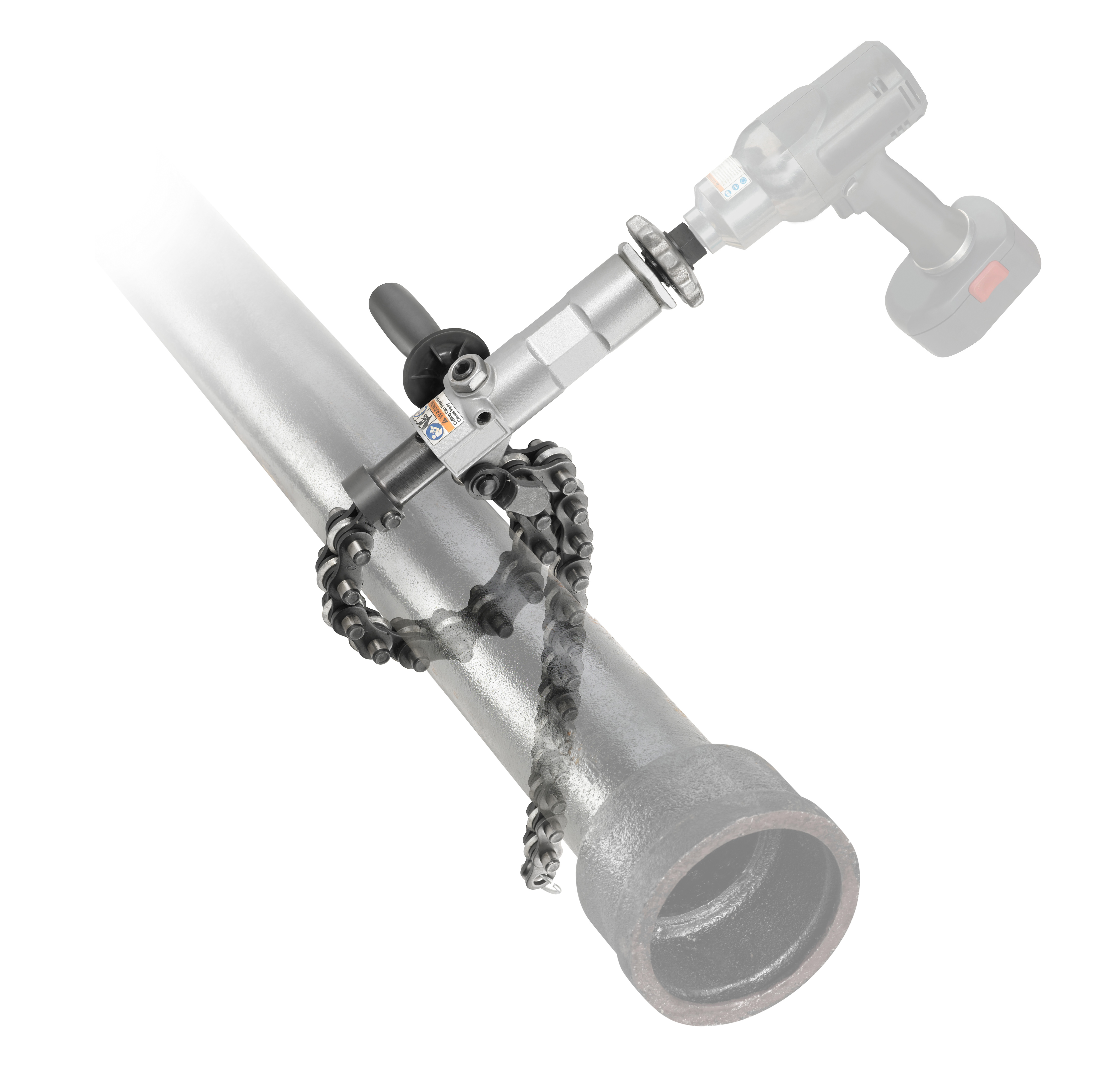 The RIDGID 238-P Powered Soil Pipe Cutter attaches to a ½” impact driver, and incorporates a cutting chain that can effortlessly cut no-hub cast iron, service weight cast iron and clay pipe up to 8” in diameter and concrete pipe up to 6” in diameter.