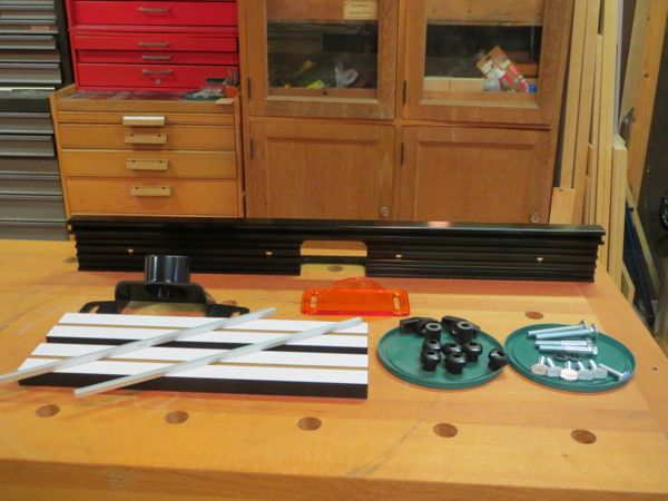 The Rockler ProFence 47905 package has 29 parts, but takes less than 10 minutes to assemble. The parts are all well-made and the aluminum L shaped fence was a true 90%.