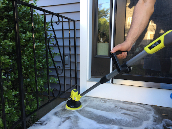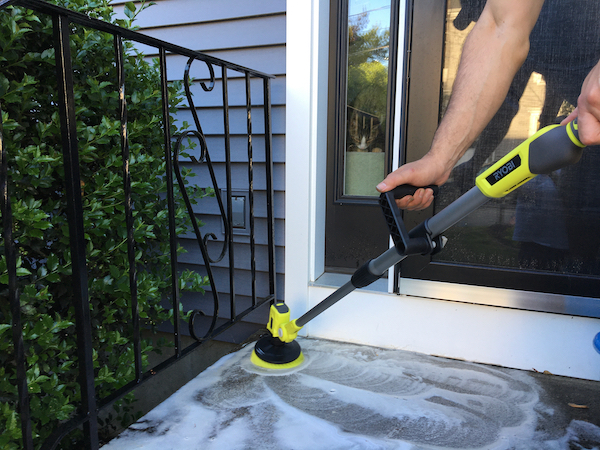 The 18V ONE+ Cordless Telescoping Power Scrubber (P4500) could extend up to 51 inches, which was great ergonomically speaking since it allowed me to stand upright while scrubbing the stairs, doormats, and car mats.
