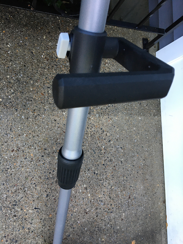 The triangle connector maintained a secure connection throughout the cleaning and the battery was still greater than 50% after almost 120 minutes of work. There was enough power in the Telescoping Scrubber that I needed to hold it with 2 hands when running it across the stairs.