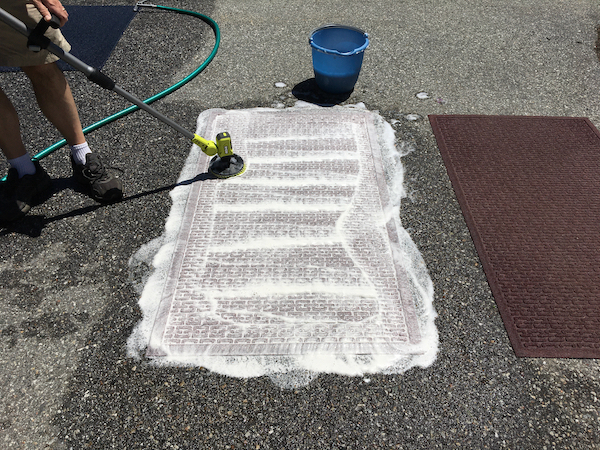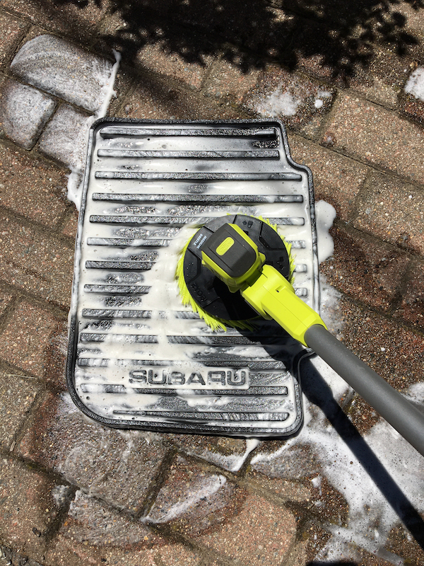 The power scrubber cleaning solutions were invaluable when I spent my weekend cleaning our two stairways, our LL Bean Waterhog Doormats, and the car mats from our two Subaru vehicles. For all of my cleaning, I used Simple Green as a cleaning solution.