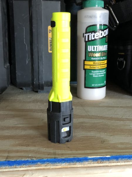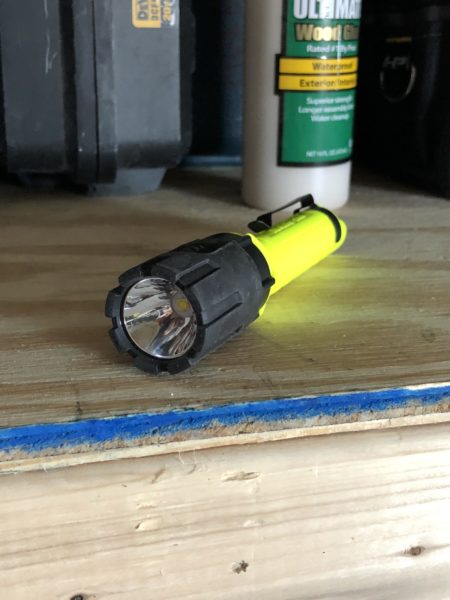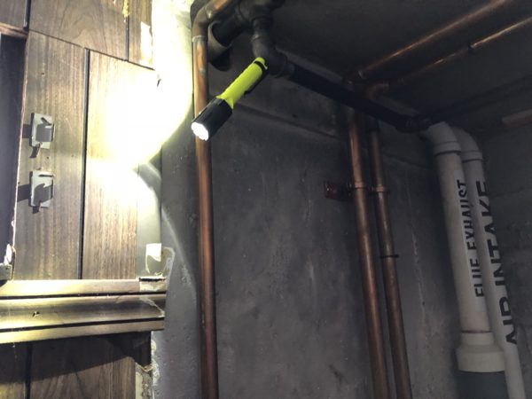 During a recent boiler room remodel lighting was a bit of an issue. There was a small basement window but it didn’t provide much lighting. Taking down old wood paneling to make room for new stucco walls. The Streamlight Dualie hung on a 90deg connector and illuminated my entire work space.