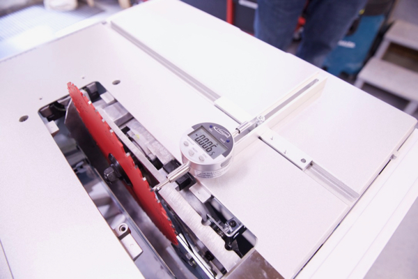 TBB used much the same technique to measure the saws to see if the fence were in alignment with the miter slots. TBB took readings between the miter slot and the fence at two locations to determine the parallel condition.
