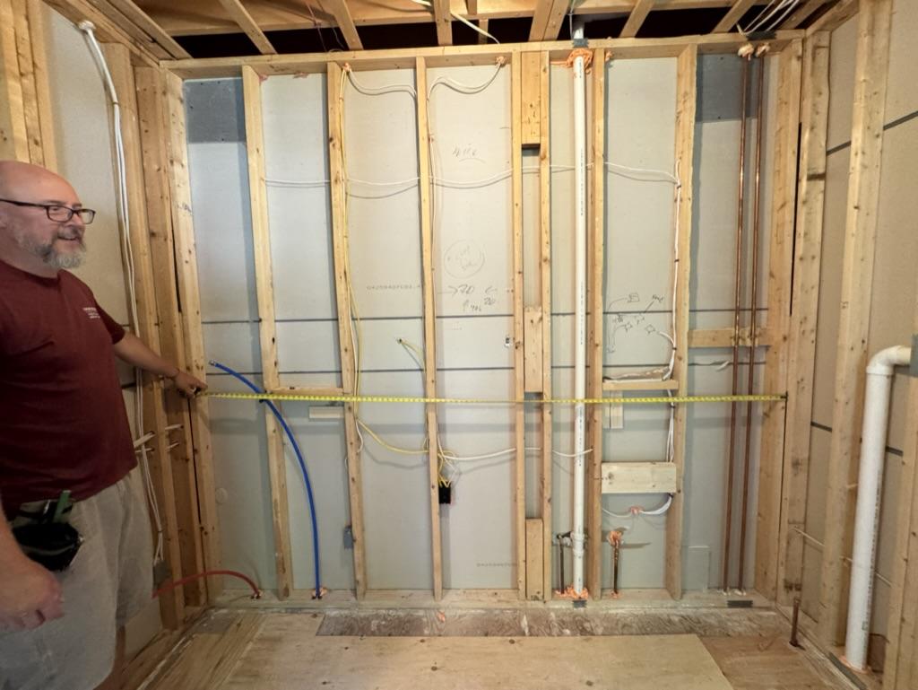 It’s also important and “cheap insurance” to mark the location of any pipes or other hidden items on the sub-floor so you don’t hit a nail through it later after drywall is installed