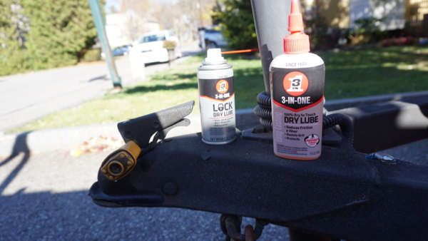 I use 3-IN-ONE Lock Dry Lube on all the locks and moving parts on my trailer. I first discovered the Lock Dry Lube after my trailer padlock had frozen one winter.