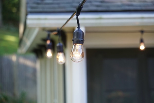 I purchased BrightTech Ambience Pro Outdoor String Lights. This string comes in a 45-foot string and uses vintage Edison bulbs with exposed filaments give off a warm, nostalgic glow. The Ambiance Pro light string is all black, has a hanger mounting hole and is a heavy duty cord, that is thicker than any other cords I’ve seen. This string light is also dimmer compatible.