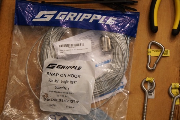 The first step in doing this project is to determine the length cable you’ll need. Once that has been determined, you need to decide what structures you’re going to use to support your cable, so you can install any needed hardware.