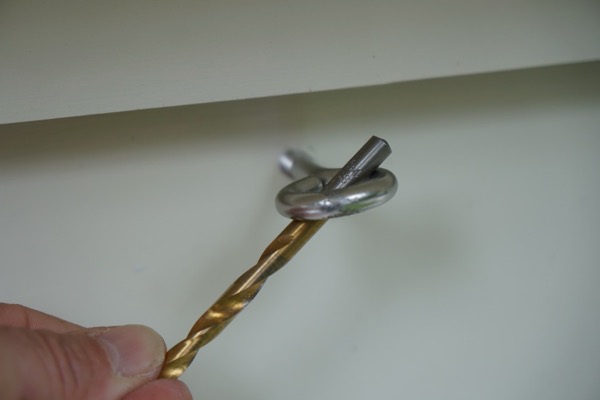 I used a drill bit to drill a pilot hole through the fascia and into the rafter tail. The drill bit, pilot hole should be approximately 75% of the total diameter of the eye-bolt threads. TIP: A good rule of thumb is to choose a drill bit that is the same diameter as the solid part of the eye-bolt minus the threads.
