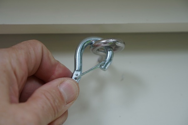 Note – In order to get the bulb, carabiner and eye-hook to meet I had to pull the sting line tight. This pulling action, pulled my cable out of my straight line a bit. I was OK with this, as it also kept my 2nd run of string light tighter. If you want to avoid this, you will need to use zip ties, or a different connection the house.