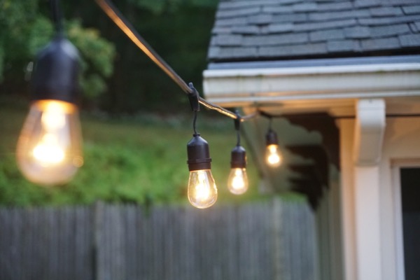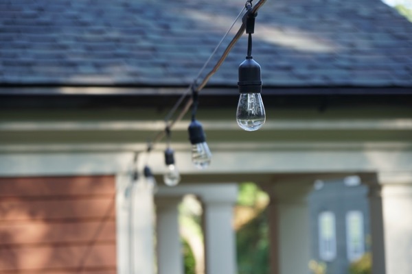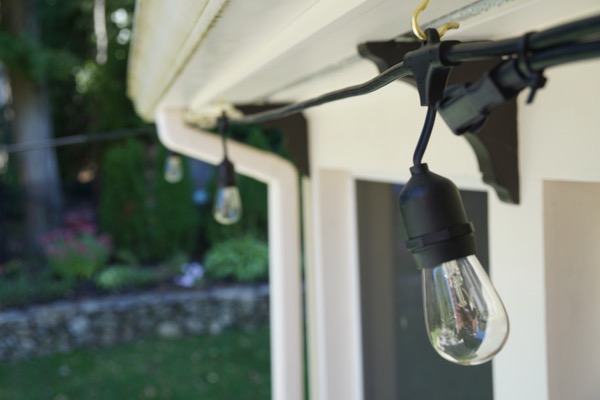 I purchased BrightTech Ambience Pro Outdoor String Lights. This string comes in a 45-foot string and uses vintage Edison bulbs with exposed filaments give off a warm, nostalgic glow. The Ambiance Pro light string is all black, has a hanger mounting hole and is a heavy duty cord, that is thicker than any other cords I’ve seen. This string light is also dimmer compatible.