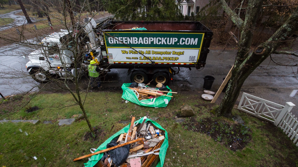 Just make sure you set up the bag where they can grab it with their crane – we chose a convenient spot in the side yard, right by the road – and obviously, situate the bag where you’ll want to leave it before you start filling it up with junk. When the bag is full, schedule your pickup – Greenbagpickup.com makes it easy to do online – and you’re done. You don’t need to be home to wait for the hauler.