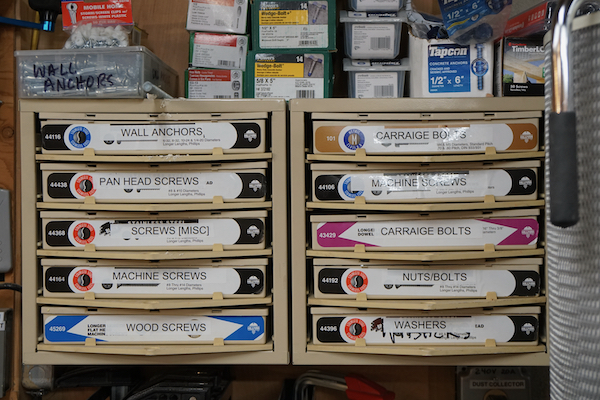 If you store your tools in their boxes, labeling tool boxes assist you, or someone working with you, to quickly assess which tool you’re looking for. The same principle applies to parts and fasteners.